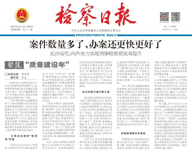 据了解,今年1月至7月,雨花区365bet网站_365bet娱乐平台_bt365.me院在人均审结刑事案件99人、办案数量同比增长32%的压力下,刑事案件办理反而实现“七无一有”:无因事实问题导致“诉判不一”的案件,无批准逮捕后作存疑不起诉、绝对不起诉的案件,无提起公诉后又因法定以外原因撤回起诉的案件,无提起公诉后被法院判决无罪的生效案件,无因办案差错导致国家赔偿的案件,无引发负面舆情和当事人赴省进京上访的案件,无被上级领导机关评为不合格和错误的案件,同时培育出一批优秀案件、精品案件。