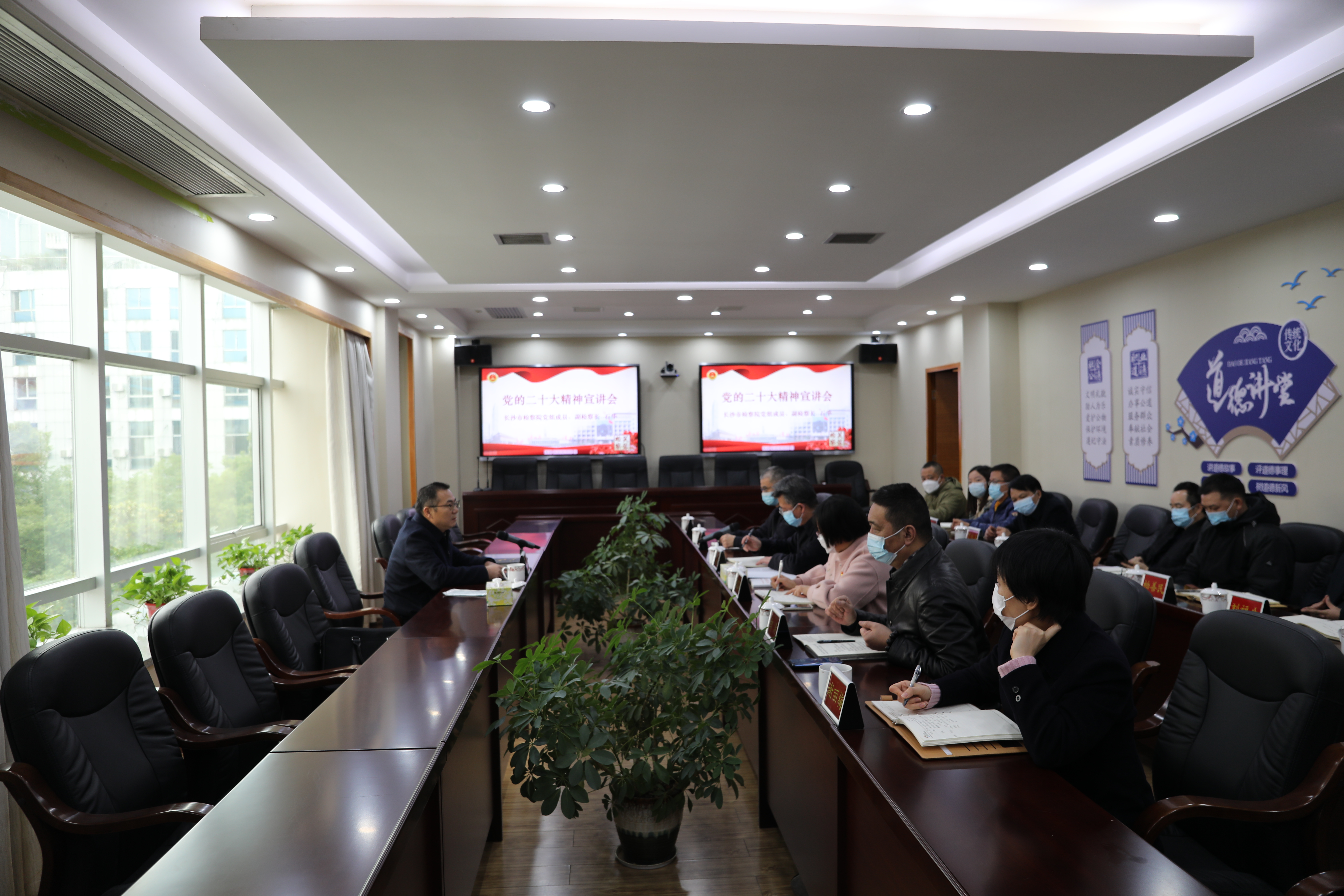 12月2日下午,长沙市365bet网站_365bet娱乐平台_bt365.me院党组成员、副365bet网站_365bet娱乐平台_bt365.me长石华一行到芙蓉区365bet网站_365bet娱乐平台_bt365.me院宣讲党的二十大精神,督导调研党的二十大精神宣传贯彻落实情况。宣讲会由芙蓉区院党组书记、365bet网站_365bet娱乐平台_bt365.me长盛智主持,芙蓉区院全体班子成员、检委会专职委员、各内设机构负责人参加会议。