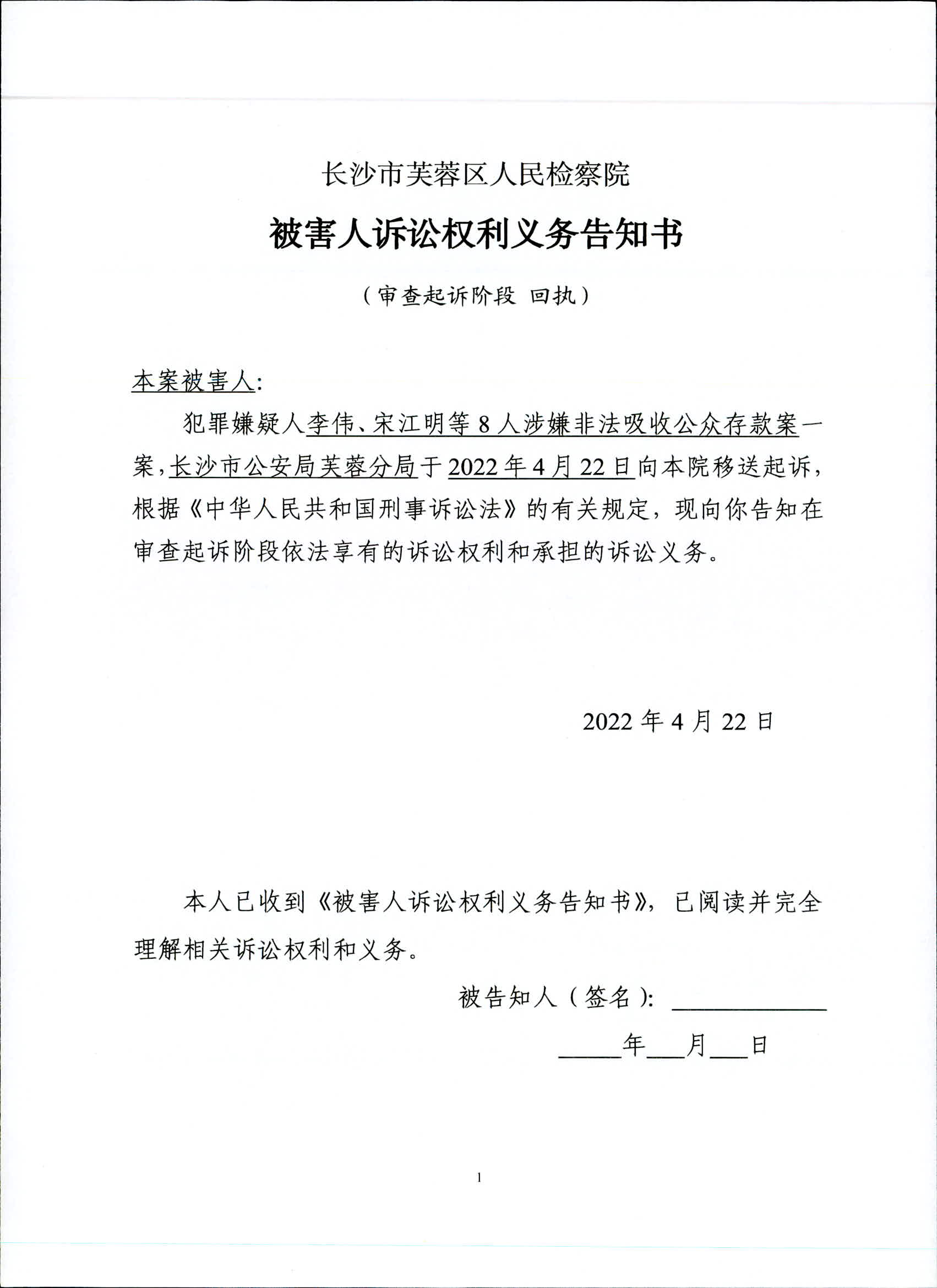 李伟、宋江明等8人涉嫌非法吸收公众存款案委托诉讼代理人/申请法律援助告知书、被害人诉讼权利义务告知书