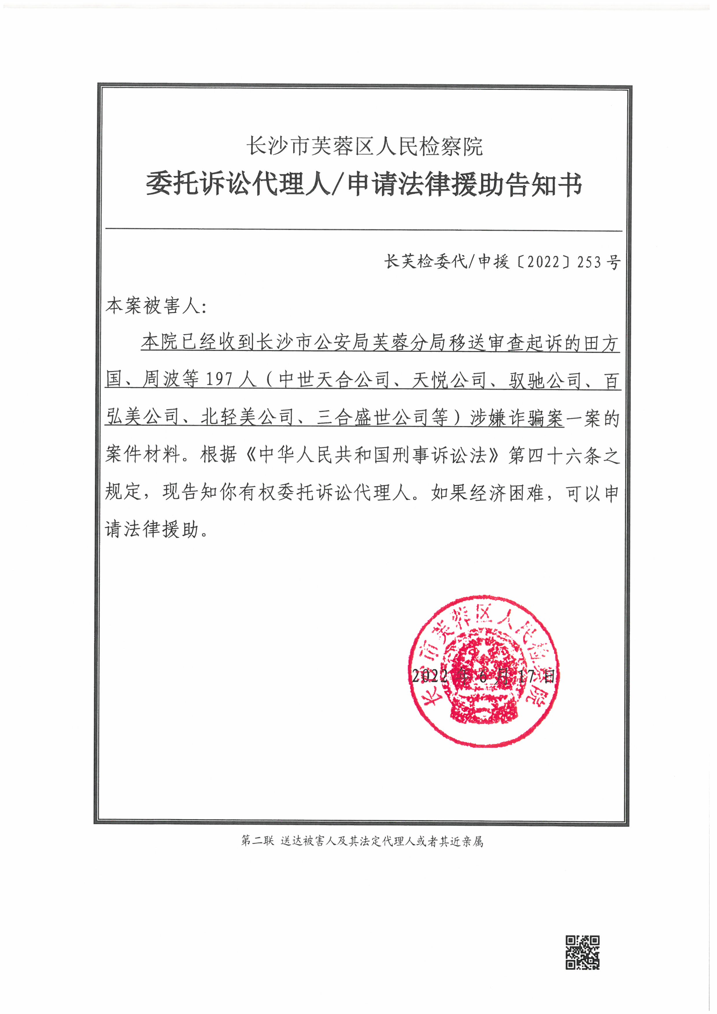 田方国、周波等197人涉嫌诈骗案委托诉讼代理人/申请法律援助告知书、被害人诉讼权利义务告知书