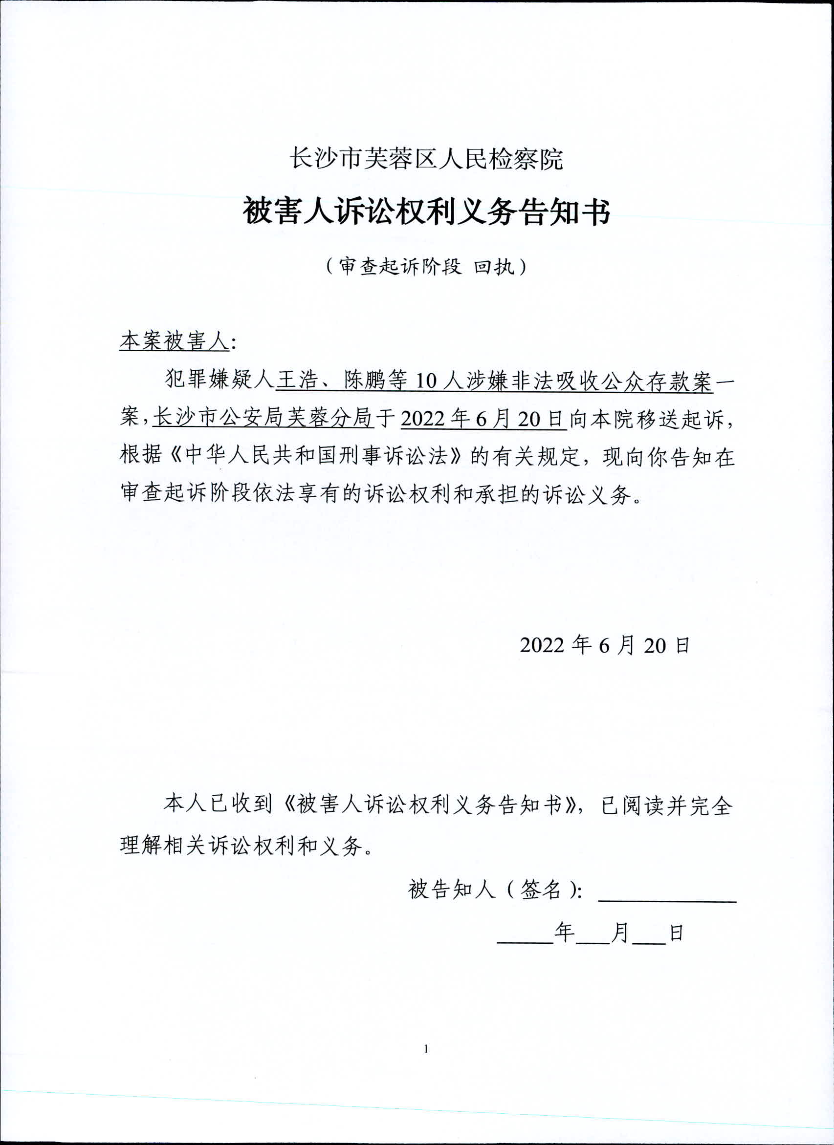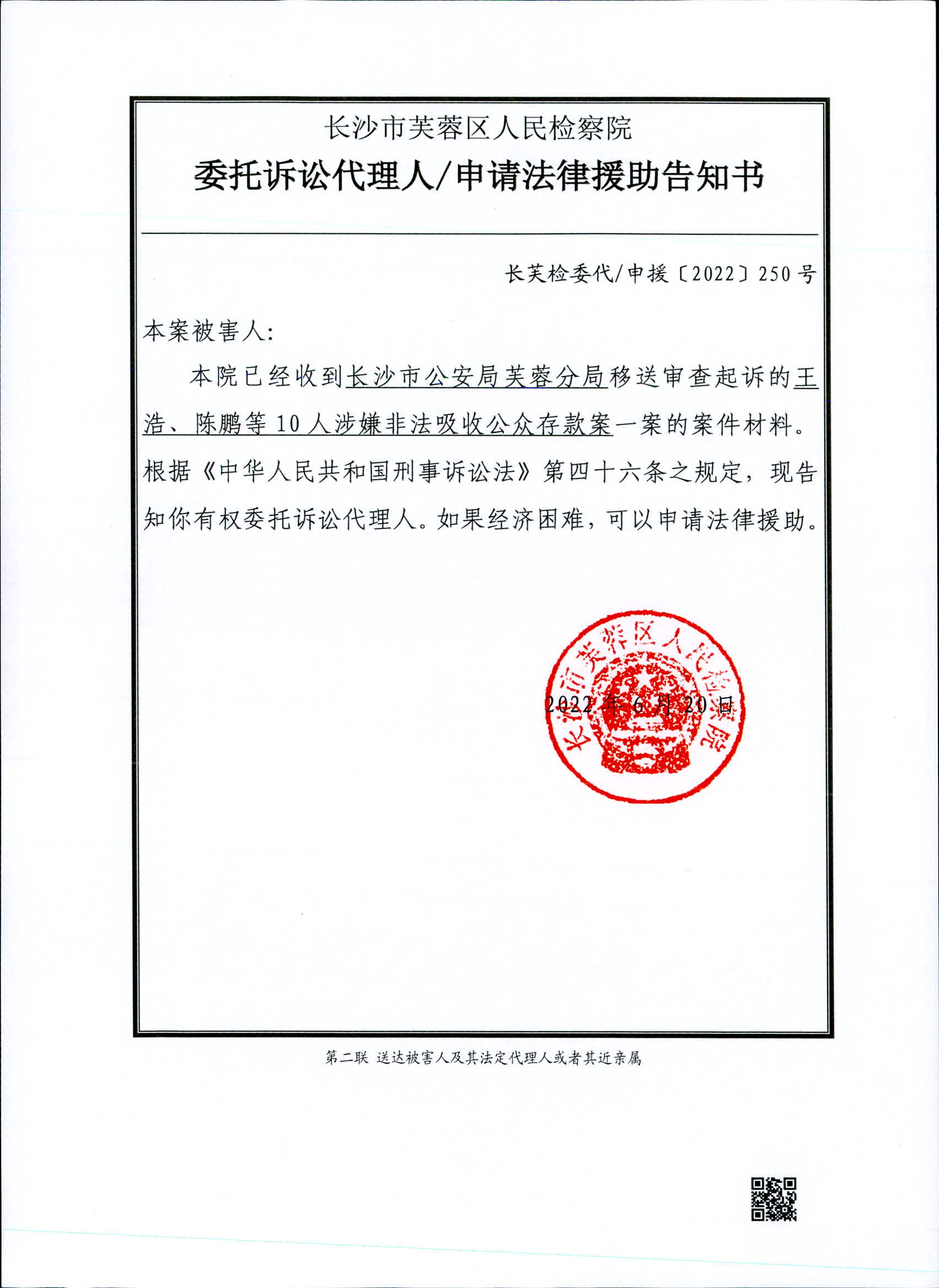王浩、陈鹏等10人涉嫌非法吸收公众存款案委托诉讼代理人/申请法律援助告知书、被害人诉讼权利义务告知书