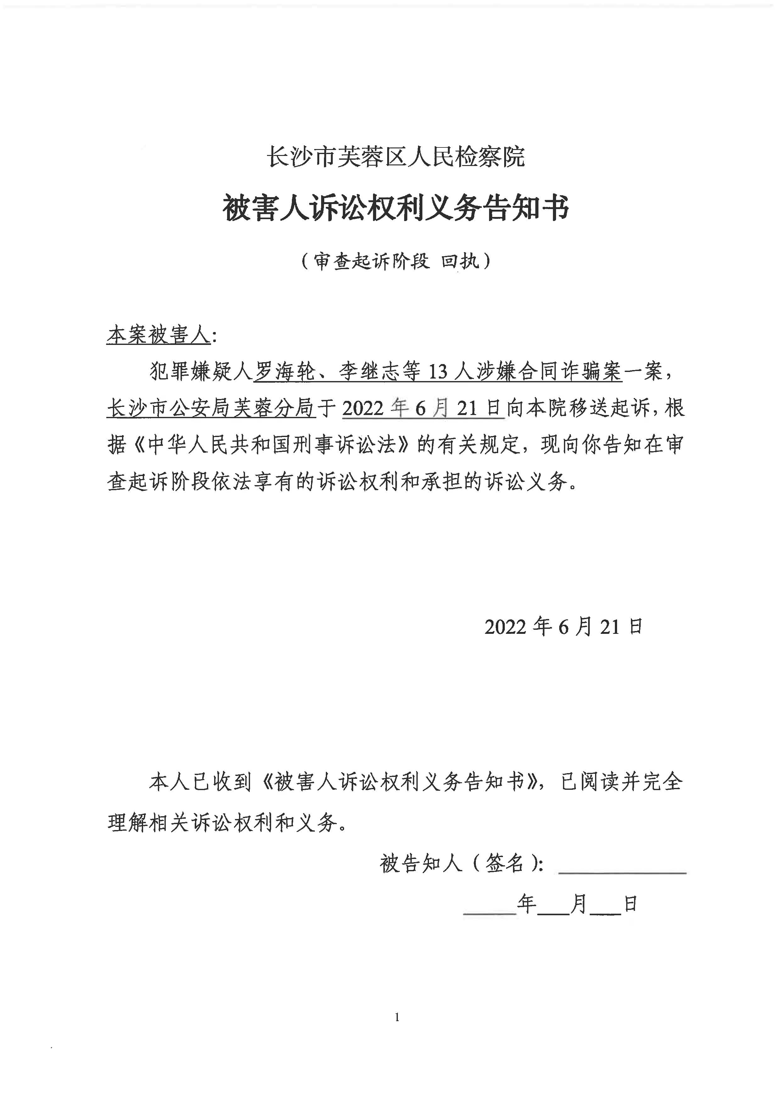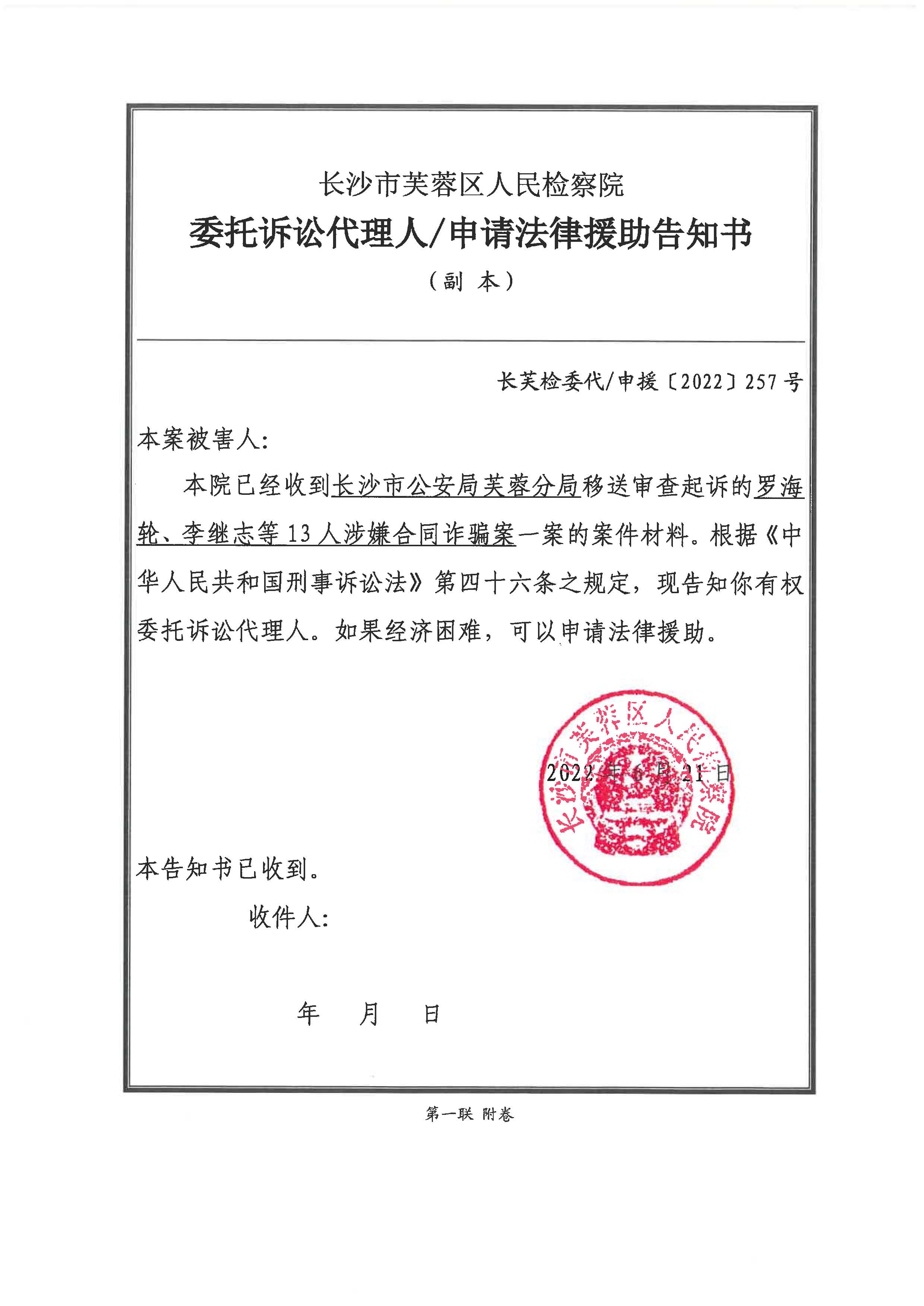 罗海轮、李继志等13人涉嫌合同诈骗案委托诉讼代理人/申请法律援助告知书、被害人诉讼权利义务告知书