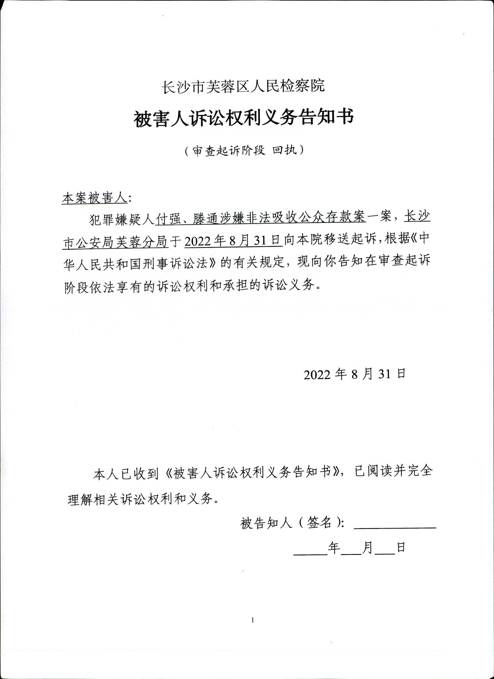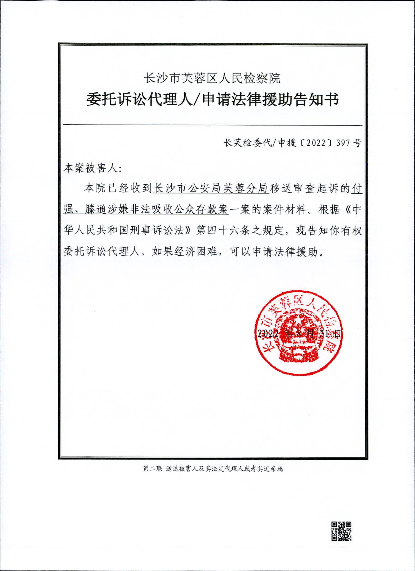 付强、滕通涉嫌非法吸收公众存款案委托诉讼代理人/申请法律援助告知书、被害人诉讼权利义务告知书
