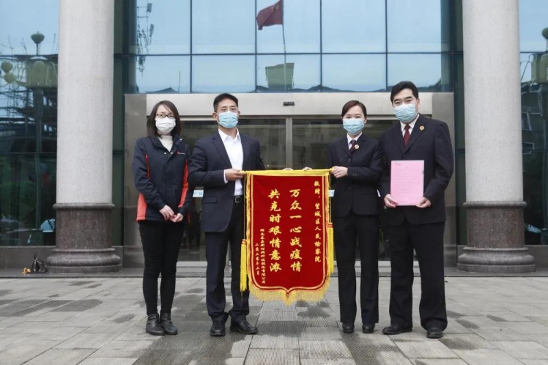 2月28日下午,湖南泰嘉新材料科技股份有限公司给望城区365bet网站_365bet娱乐平台_bt365.me院送来了一面锦旗和一封感谢信,“区365bet网站_365bet娱乐平台_bt365.me院这次的来访和援助,不仅增强了我们战胜疫情的信心,也鼓舞了我们尽快恢复生产经营,为望城这片热土继续做更大贡献的决心”他们在感谢信中这样写到。随着返工热潮的到来,如何贯彻落实中央政法委会同最高人民法院、最高人民365bet网站_365bet娱乐平台_bt365.me院、公安部、司法部制定的《关于政法机关依法保障疫情防控期间复工复产的意见》,找准疫情防控和企业复产的结合点和着力点,为企业有序、顺利复工复产,维持正常经济社会秩序提供优质高效、坚强有力的执法司法保障成了当下工作的重点。2月27日上午,长沙市望城区人民365bet网站_365bet娱乐平台_bt365.me院副365bet网站_365bet娱乐平台_bt365.me长江朔、办公室主任曹辉、服务营商环境联络点办公室主任麻丽华等一行来到湖南泰嘉新材料科技股份有限公司,助力企业复产复工的同时,也确保疫情防控政策落地落实。