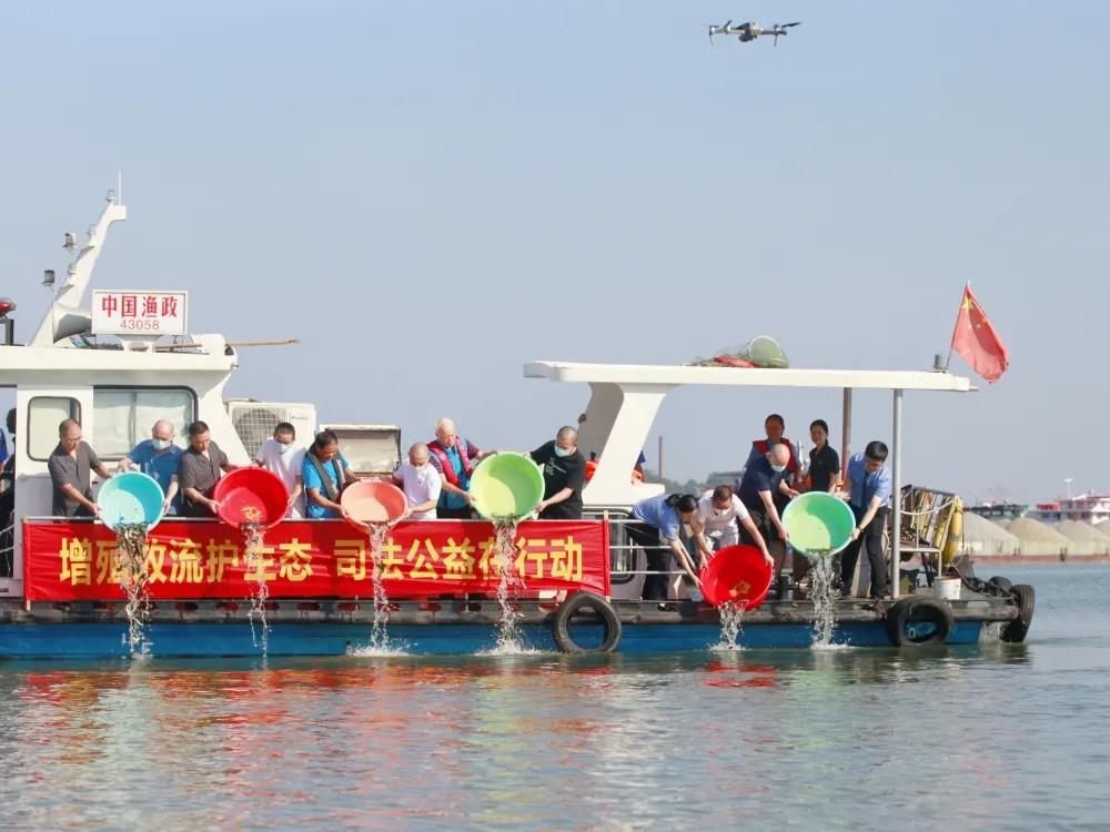 为了尽快修复受损的渔业资源与生态环境,庭审当天下午,在区365bet网站_365bet娱乐平台_bt365.me院的监督下,在区法院、区农业农村局、区城管局、靖港镇政府、绿色潇湘环保组织以及湖南水产科学研究所相关人员的共同见证下,6名被告人来到望城区靖港轮渡码头,将第一批次共计9万余尾鱼苗放流至湘江。该院公益诉讼部门负责人李丹介绍,为了贯彻落实长江流域“十年禁渔令”,该院联合有关职能部门一道开展了此次增殖放流的联合行动。